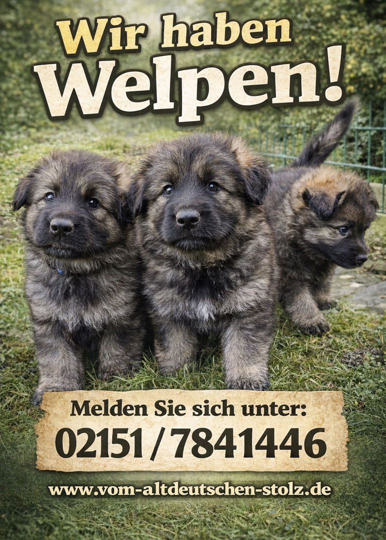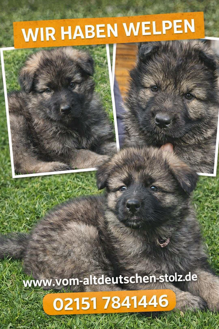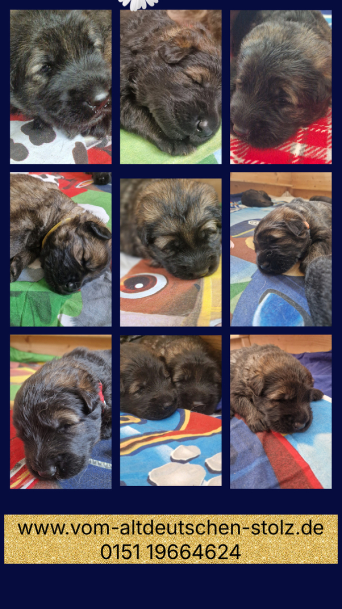 Unsere altdeutschen Schäferhunde sind HD / ED und DM frei mit geradem Rücken und Papieren !!